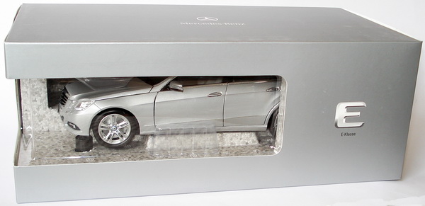 Minichamps-Modellauto, M 1:18, Mercedes-Benz E-Klasse (W212) Avantgarde iridiumsilbermet. (Mercedes-Werbemodell)