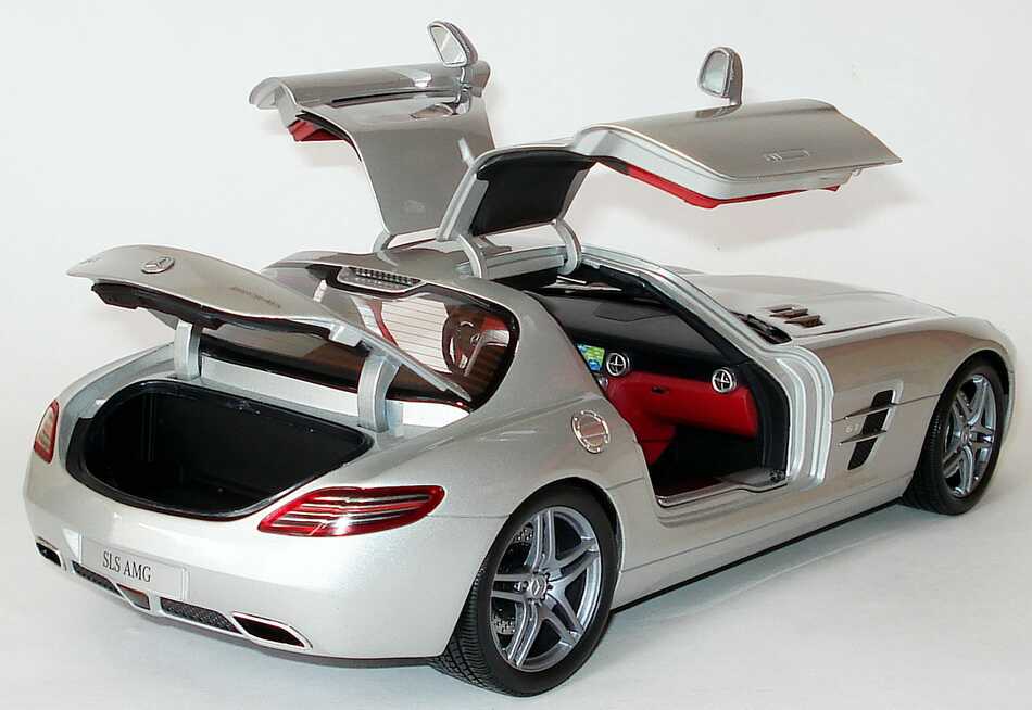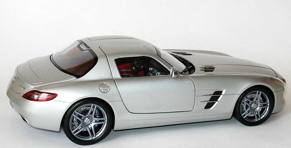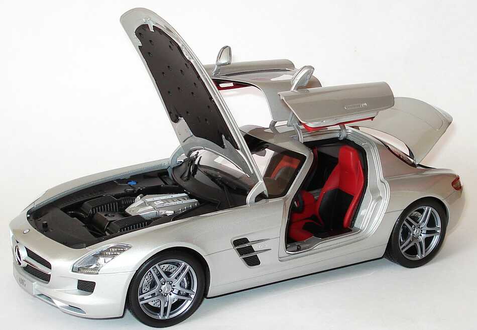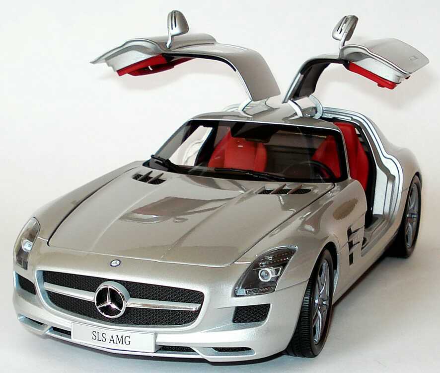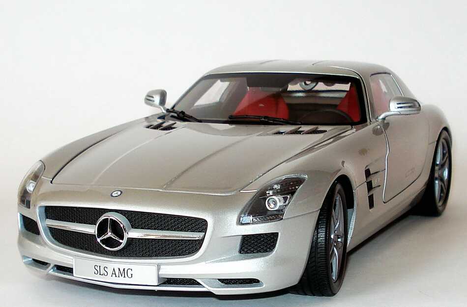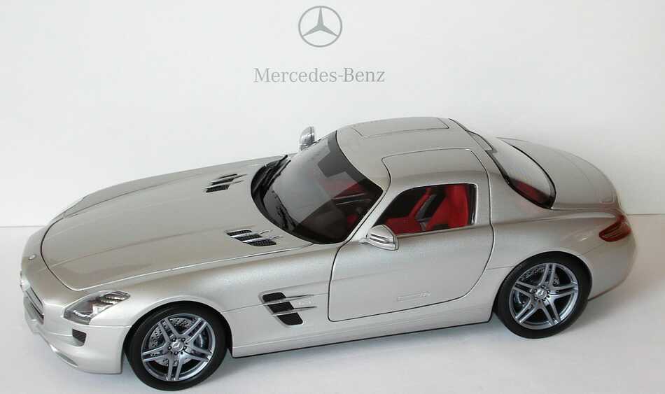 Minichamps-Modellauto, M 1:18, Mercedes-Benz SLS AMG iridiumsilbermet. (Mercedes-Werbemodell)