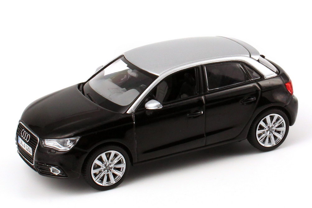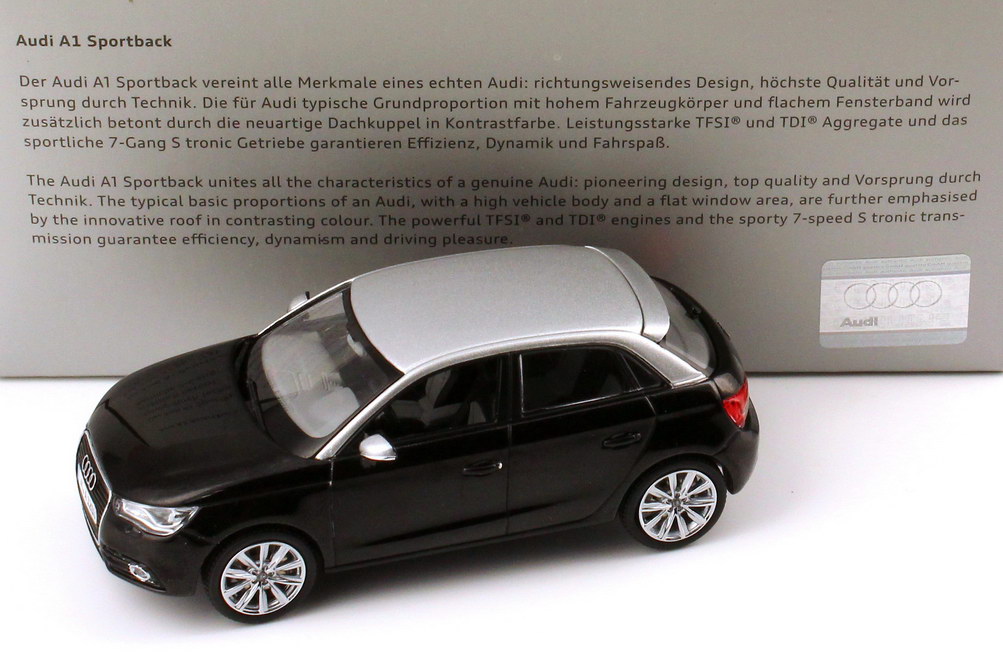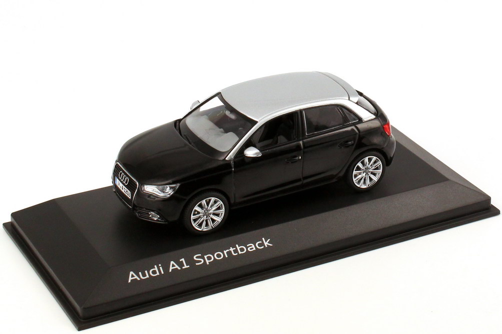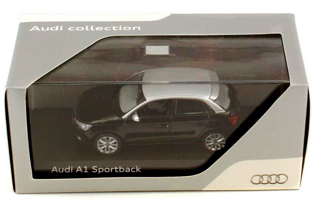 Kyosho-Modellauto, M 1:43, Audi A1 Sportback phantom-schwarz-met. / eis-silber-met. (Audi-Werbemodell)