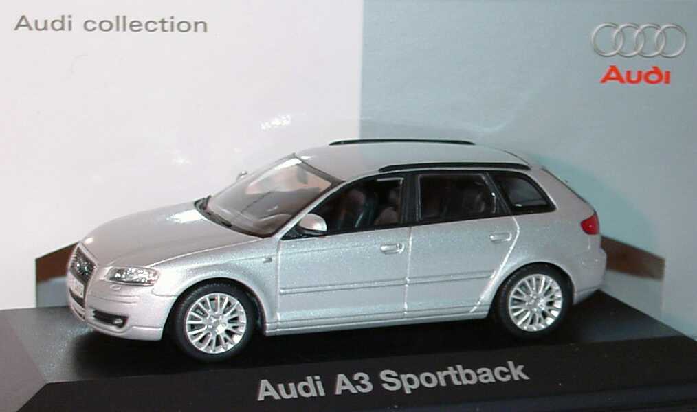 1:43 Audi A3 Sportback lichtsilber-met. Werbemodell Minichamps 5010403013