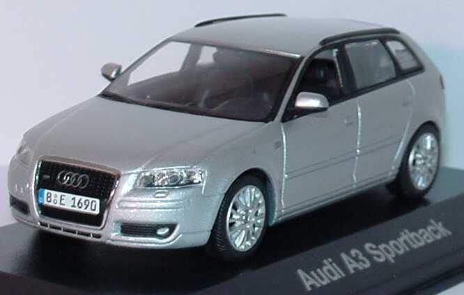 Minichamps-Modellauto, M 1:43, Audi A3 Sportback lichtsilbermet. (Audi-Werbemodell)