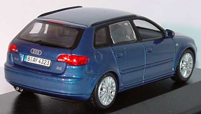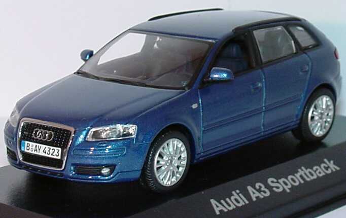 Minichamps-Modellauto, M 1:43, Audi A3 Sportback mauritiusblaumet. (Audi-Werbemodell)