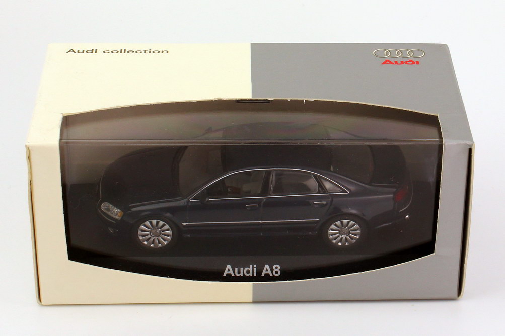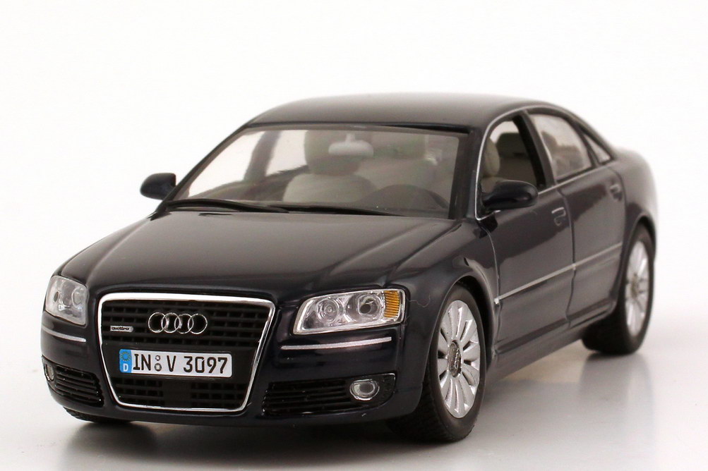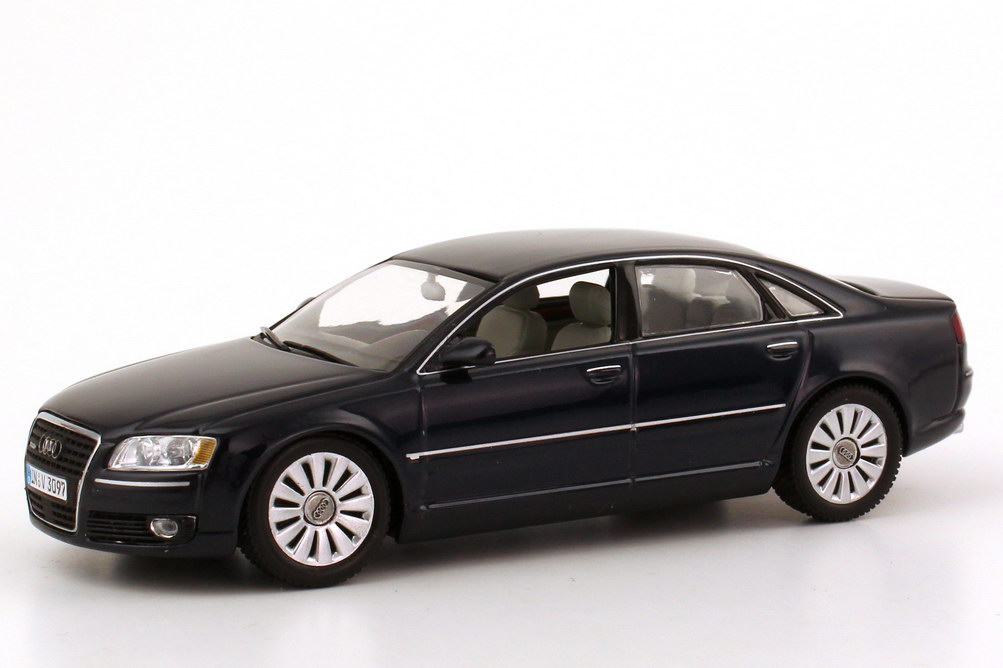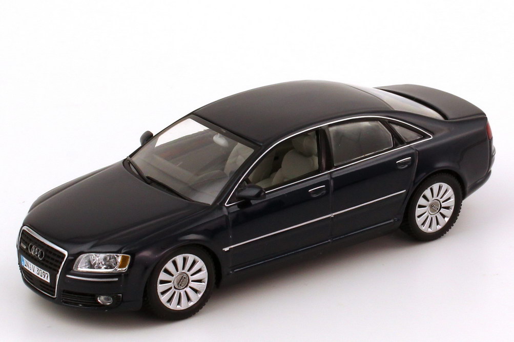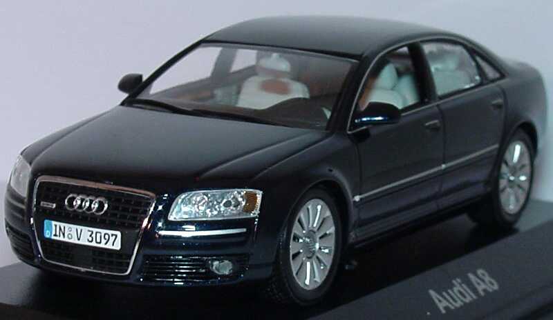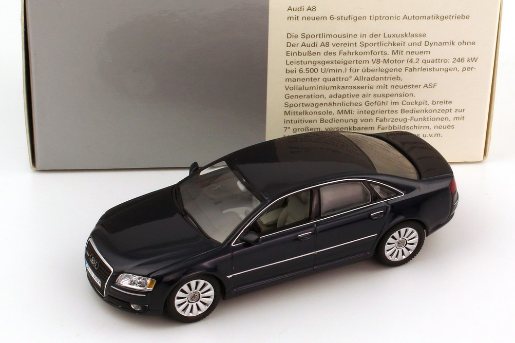 Minichamps-Modellauto, M 1:43, Audi A8 4.2 quattro (D3, Facelift 2005) nachtblau-met. (Audi-Werbemodell)