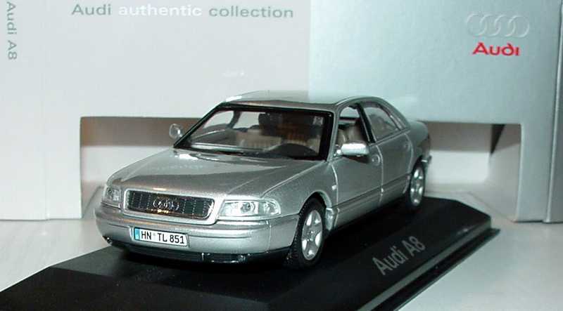 Minichamps-Modellauto, M 1:43, Audi A8 (D2 Facelift 2001) silber-met. (Audi-Werbemodell)