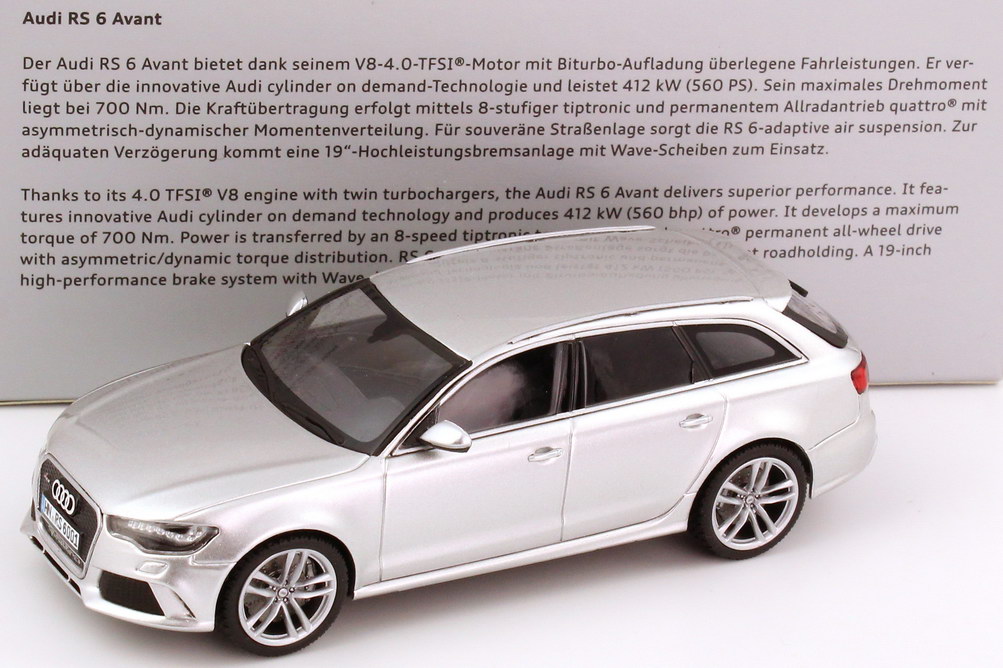 1:43 Audi RS6 Avant (C7) prisma-silber-met. Werbemodell Minichamps 5011216213