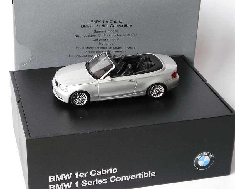 Minichamps-Modellauto in BMW-Klappbox, M 1:43, BMW 1er Cabrio (E88) titansilbermet. (BMW-Werbemodell)