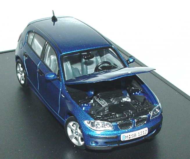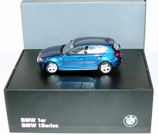 Kyosho-Modell in BMW-Klappbox, M 1:43, BMW 1er (E87) sydneybluemet. (BMW-Werbemodell)