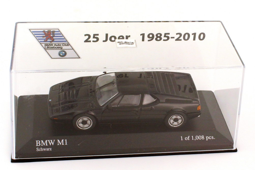 1:43 BMW M1 E26 schwarz 25 Joer BMW Auto Club Lëtzebuerg 1985-2010 - Minichamps 430025027