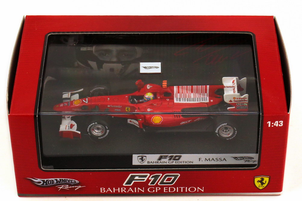 HotWheels-Modellauto, M 1:43, Ferrari F10 Formel 1 2010 Nr.7, Filipe Massa - Bahrain GP Edition