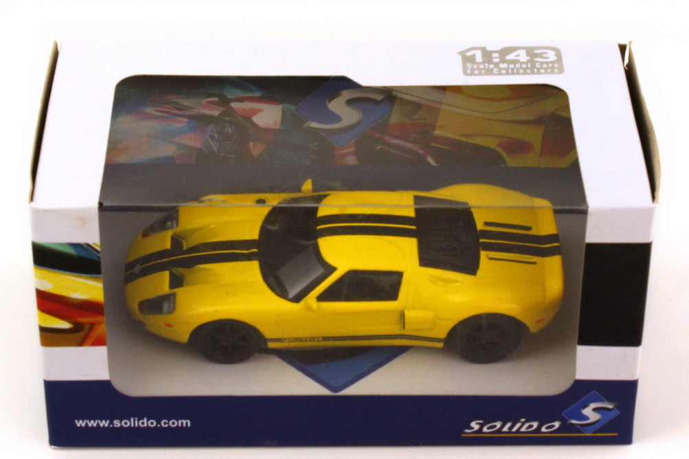 Solido-Modellauto, M 1:43, Ford GT 2008 gelb mit schwarzen Racing-Streifen