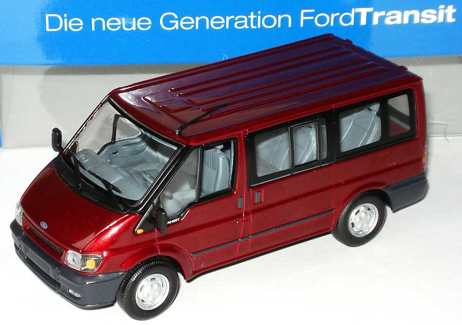 Minichamps-Modellauto, M 1:43, Ford Transit 2000 Bus weinrotmet. (Ford-Werbemodell)