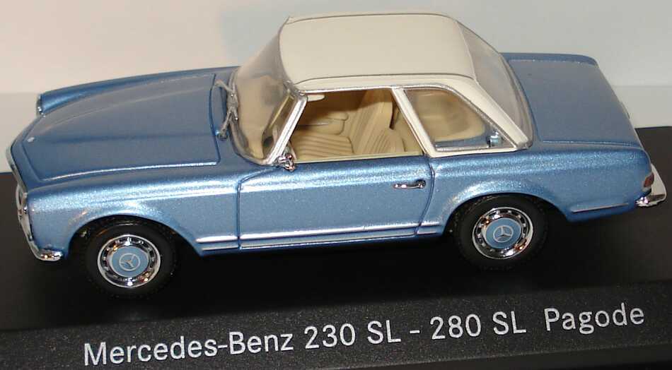 Minichamps-Modellauto, M 1:43, Mercedes-Benz 230 SL Hardtop icebluemet. (Mercedes-Werbemodell)