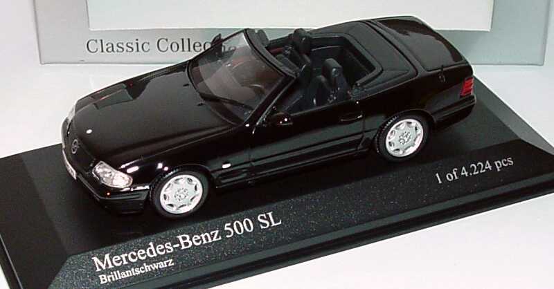 Minichamps-Modellauto, M 1:43, Mercedes-Benz 500SL (R129, Modell 95) brillantschwarz (Mercedes-Werbemodell)
