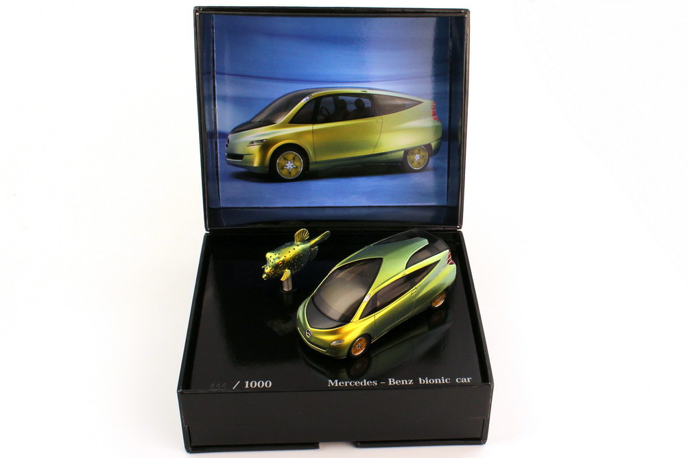 Spark-Modellauto, M 1:43, Mercedes-Benz Forschungsfahrzeug Bionic Car, Diorama mit Kofferfisch in Präsentationsbox (Mercedes-Werbemodell)