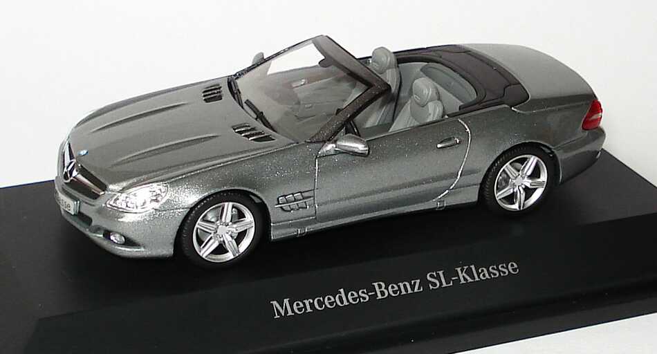 Minichamps-Modellauto, M 1:43, Mercedes-Benz SL-Klasse (R230, Modell 2008) palladiumsilbermet. (Mercedes-Werbemodell)