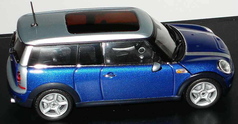 Minichamps-Modellauto in BMW-Klappbox, M 1:43, Mini Cooper S Clubman lightningbluemet. (Mini-Werbemodell)