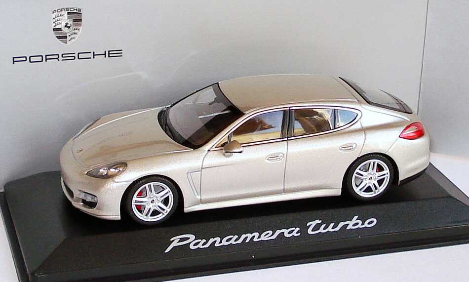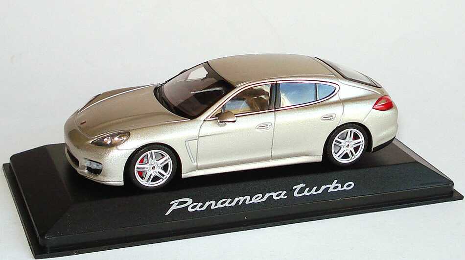 Minichamps-Modellauto, M 1:43, Porsche Panamera Turbo platinsilbermet. (Porsche-Werbemodell)