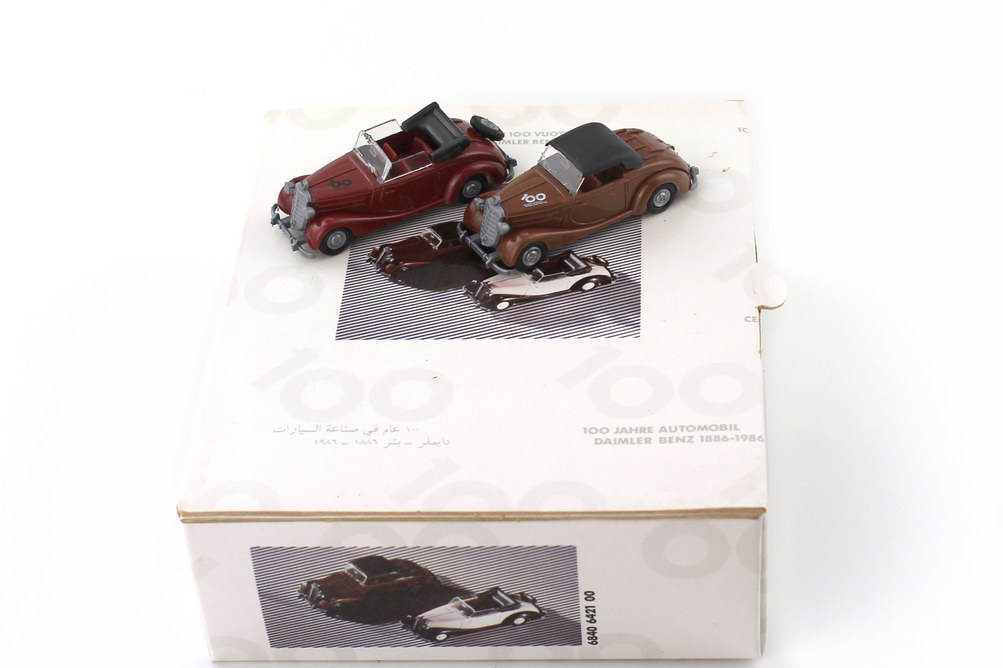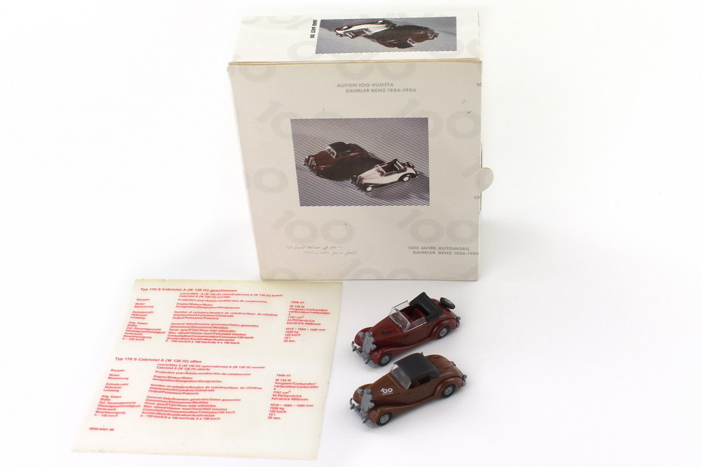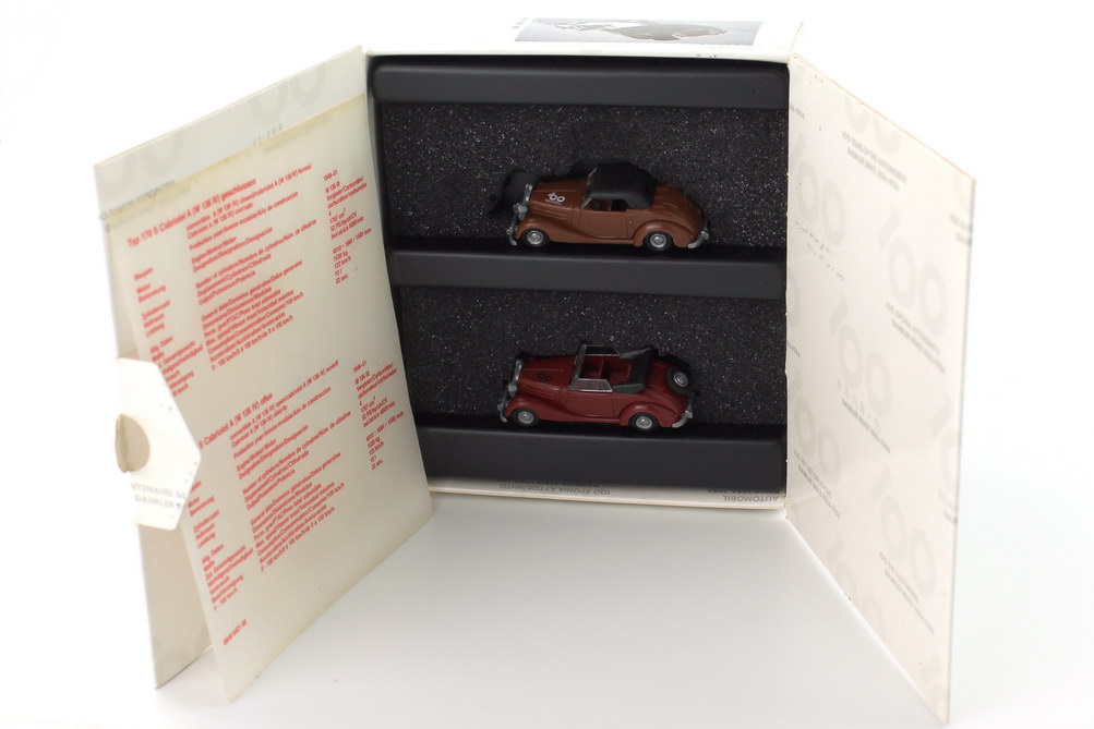 1:87 100 Jahre Automobil Daimler Benz 1886-1986 2x Mercedes 170 Cabrio W136 - Werbemodell - Praliné 6840642100