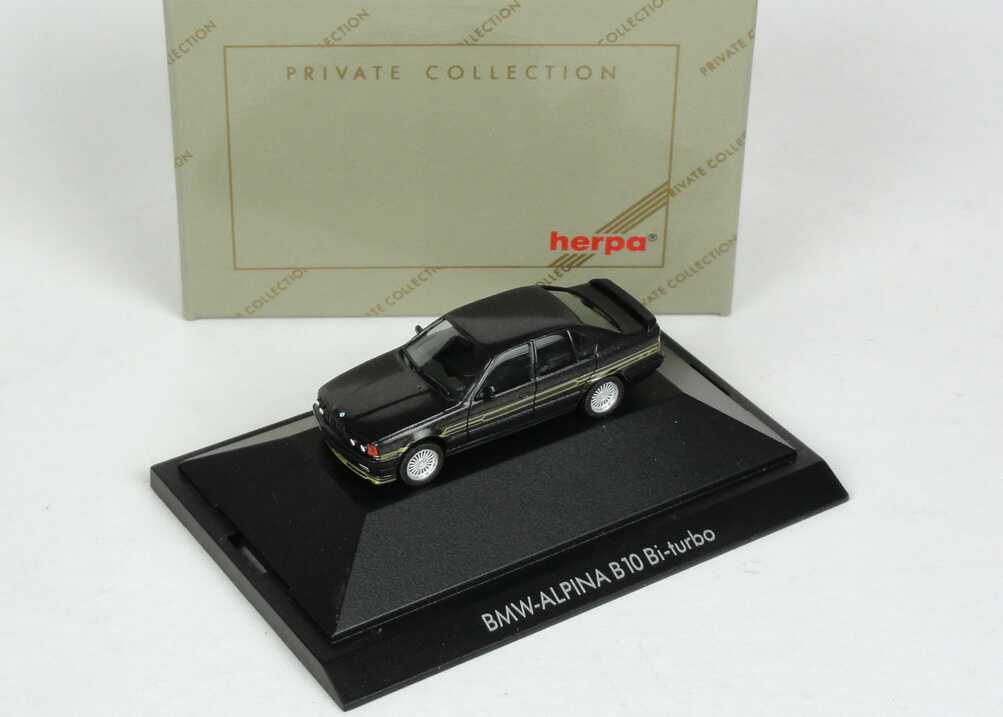 herpa-Modellauto in Minivitrine, M 1:87, Alpina B10 BiTurbo (E34) anthrazitmet.