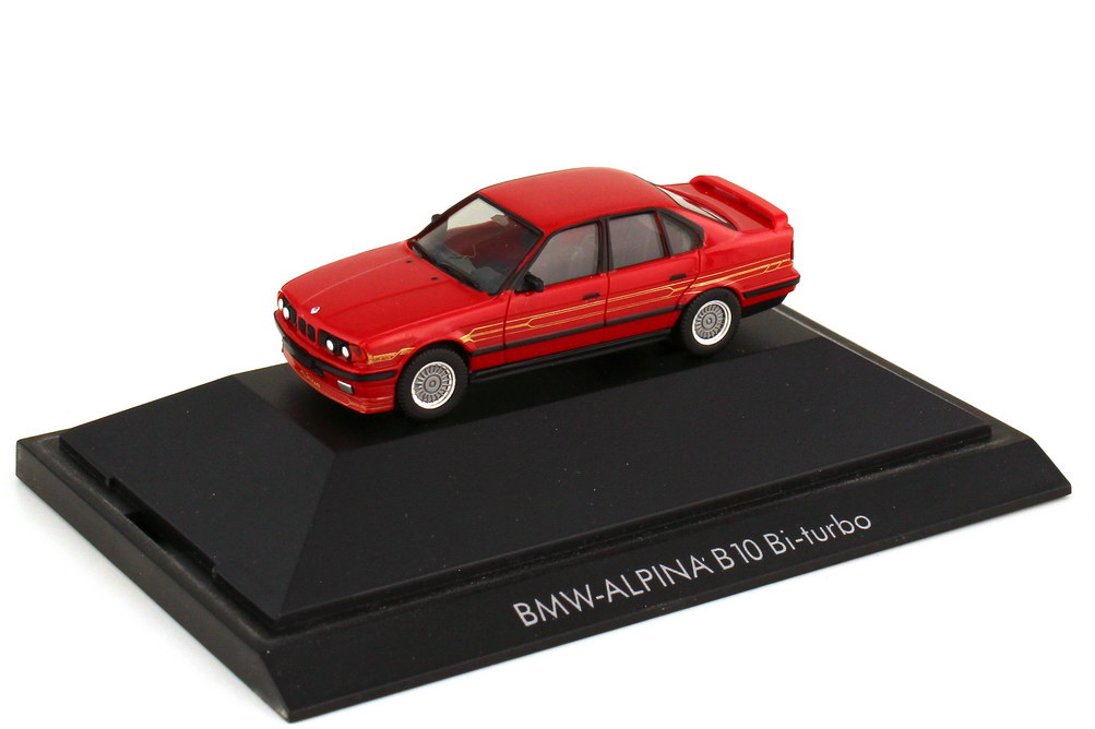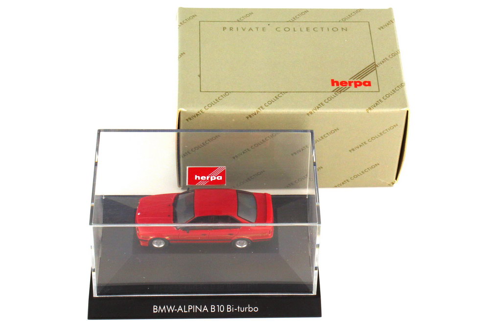herpa-Modellauto in Minivitrine, M 1:87, Alpina B10 BiTurbo (Basis BMW 5er E34) rot