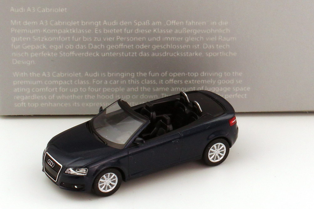1:87 Audi A3 Cabrio tiefseeblau-met. Werbemodell herpa 5010803322