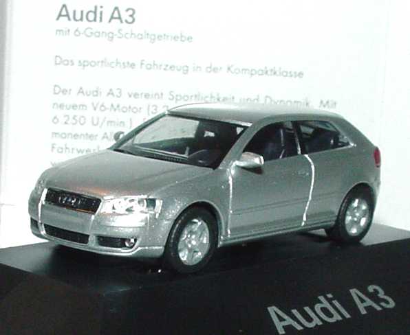 1:87 Audi A3 Facelift 2003 3türig lichtsilber-met. Werbemodell herpa 5010303042