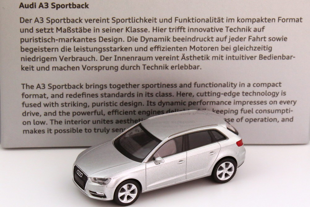 1:87 Audi A3 Sportback (8V) 2013 eis-silber-met. Werbemodell herpa 5011303012