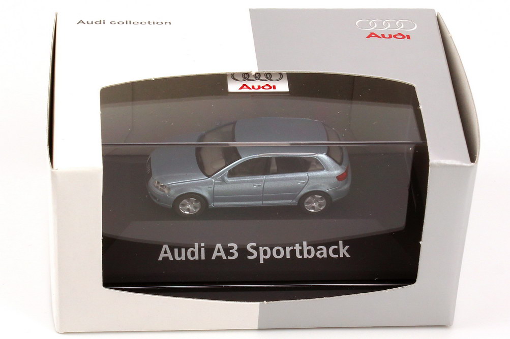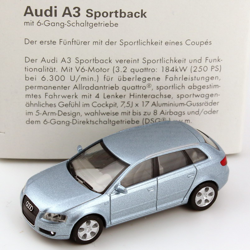 1:87 Audi A3 Sportback liquid-blau-met. Werbemodell herpa 5010403032