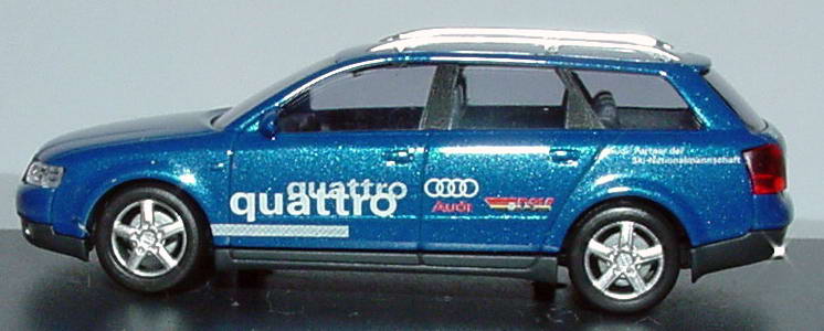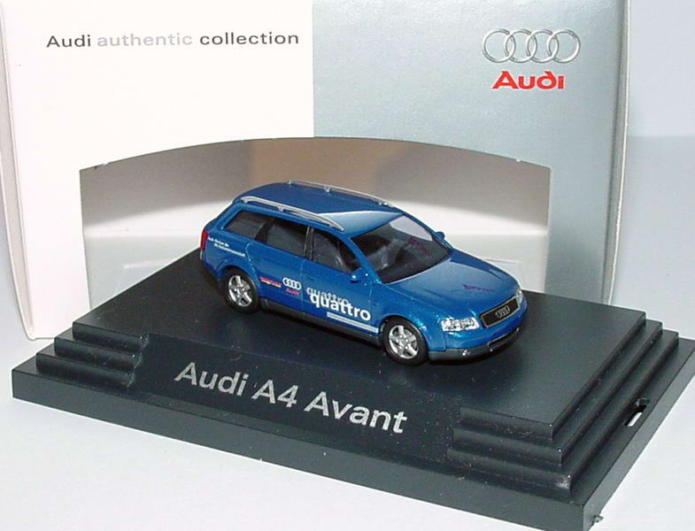 Busch-Modellauto in Minivitrine, M 1:87, Audi A4 Avant 3.0 quattro (B6) "DSV" (Audi-Werbemodell)