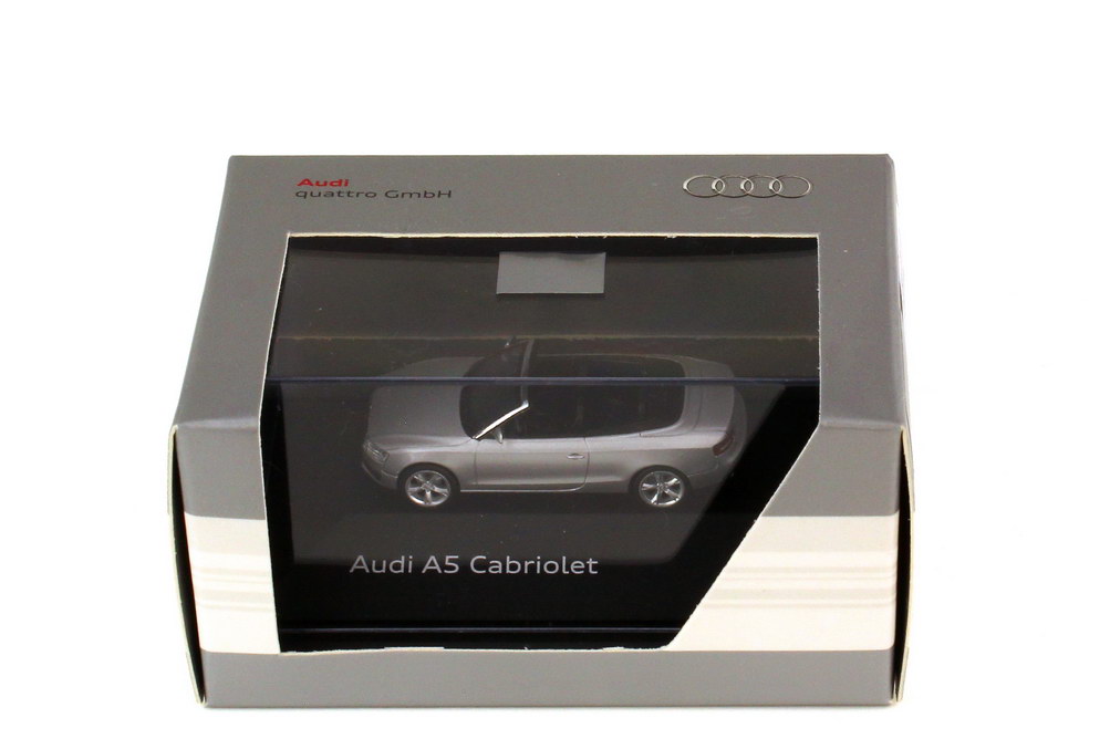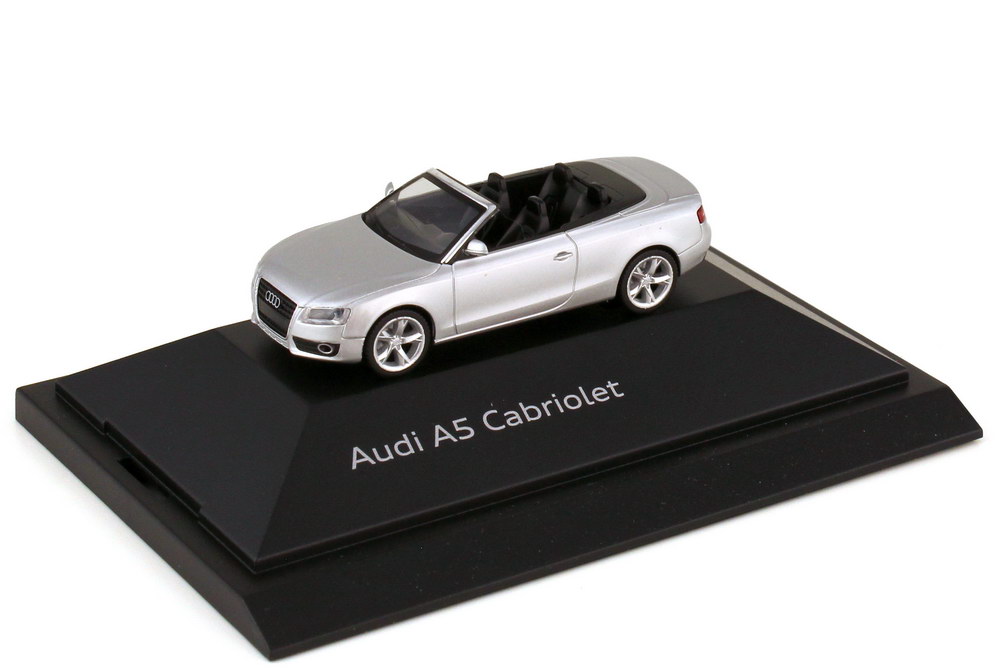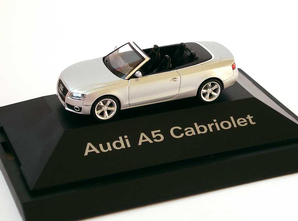herpa-Modellauto in Minivitrine, M 1:87, Audi A5 Cabriolet (8F) eissilber-met. (Audi-Werbemodell)