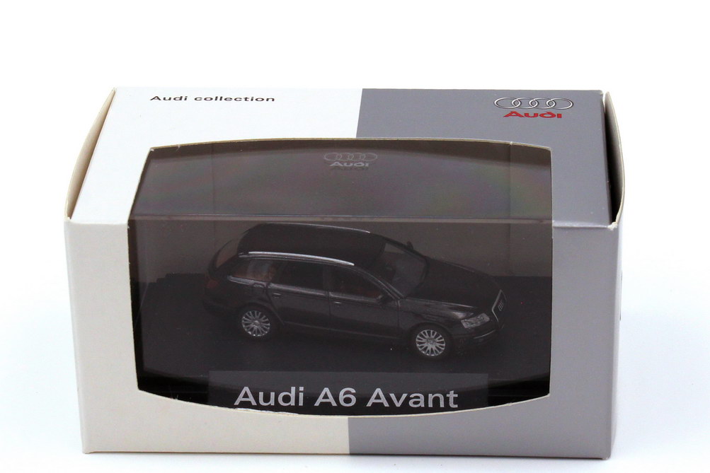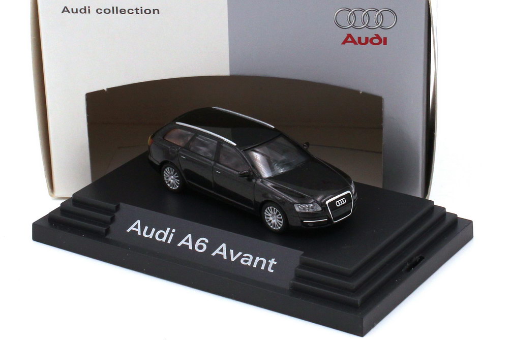 Busch-Modellauto in Minivitrine, M 1:87, Audi A6 Avant (C6) lavagrau-met. (Audi-Werbemodell)