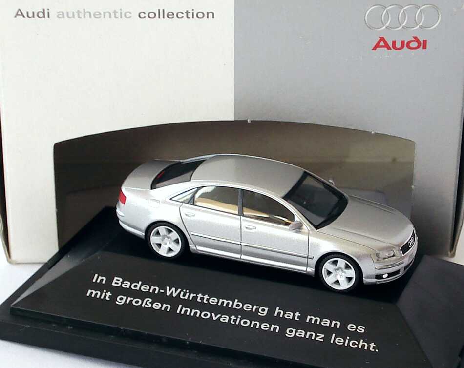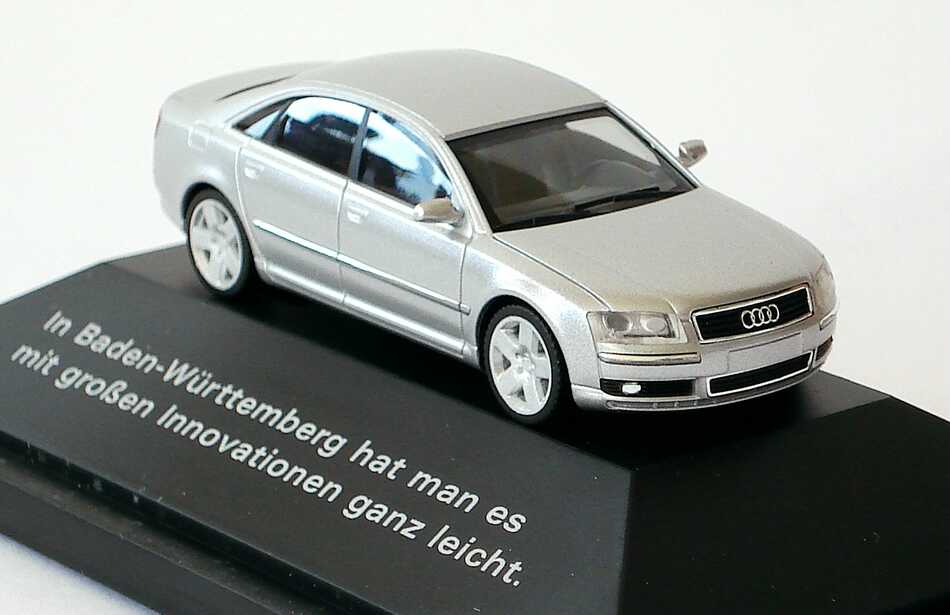 1:87 Audi A8 Mod. 2003 lichtsilber-met. "In Baden-Württemberg hat man es mit großen Innovationen ganz leicht" Werbemodell herpa 20000001387001