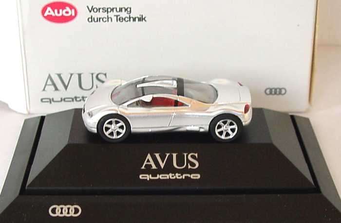 1:87 Audi Avus quattro chrom Werbemodell (Sockel mit Ringe-Logo) Rietze
