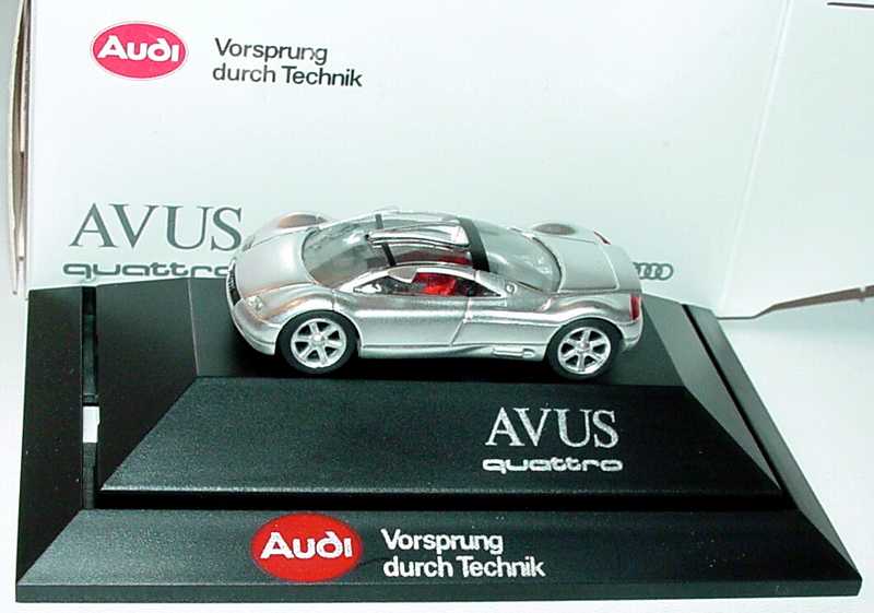 1:87 Audi Avus quattro chrom Werbemodell (Sockel mit rotem Audi-Logo) Rietze