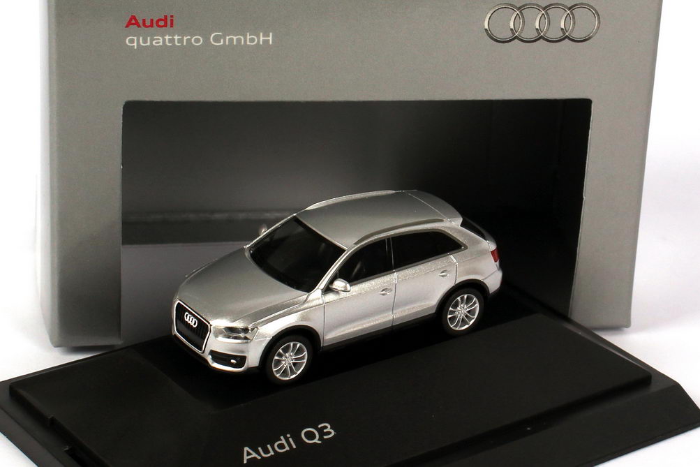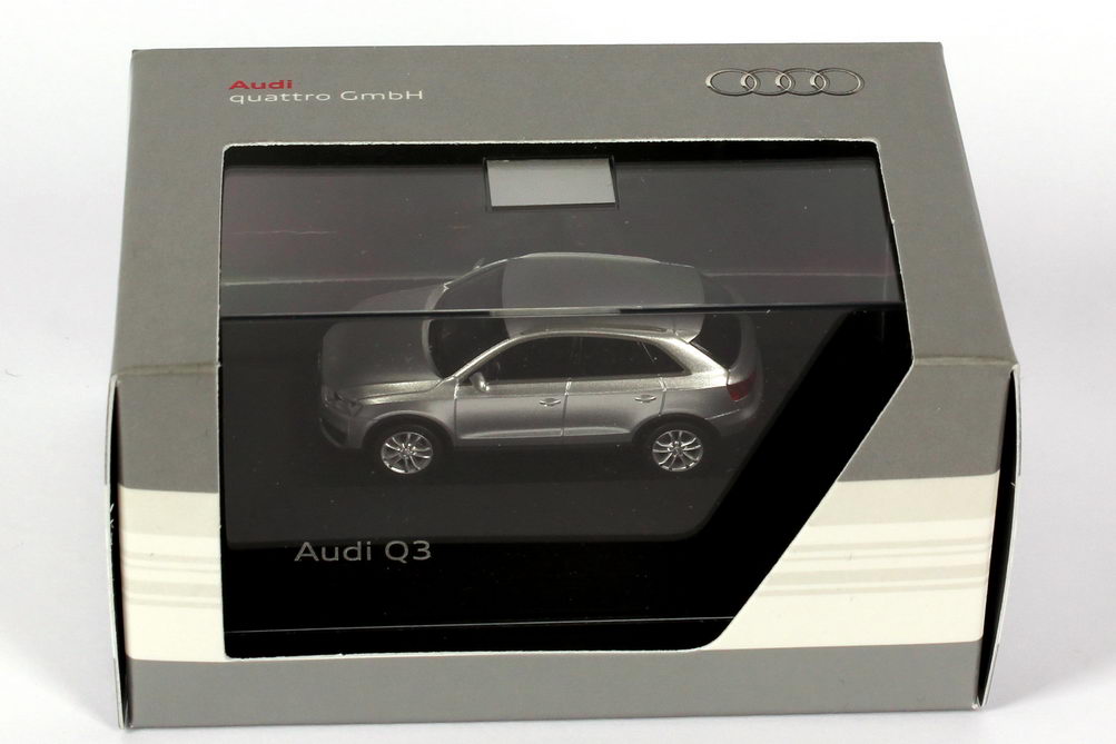 herpa-Modellauto in Minivitrine, M 1:87, Audi Q3 eissilber-met. (Audi-Werbemodell)