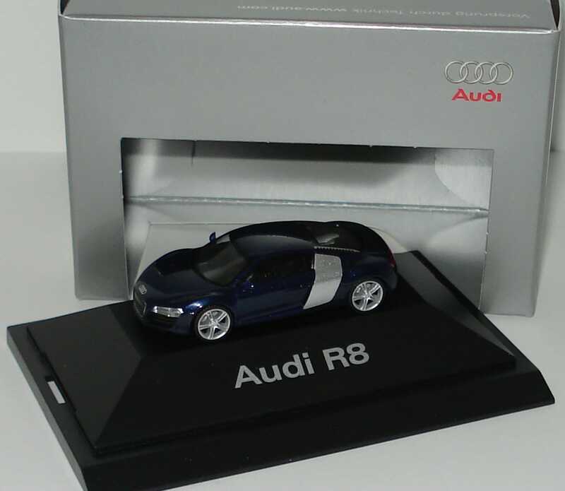 herpa-Modellauto in Minivitrine, M 1:87, Audi R8 4.2 FSI quattro mugelloblau-met. (Audi-Werbemodell)