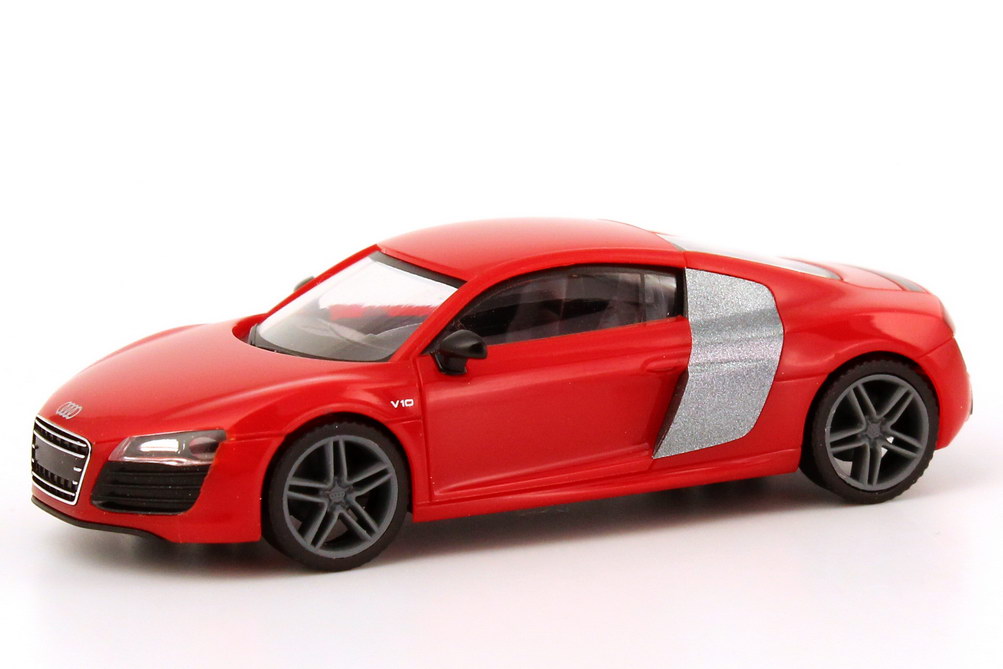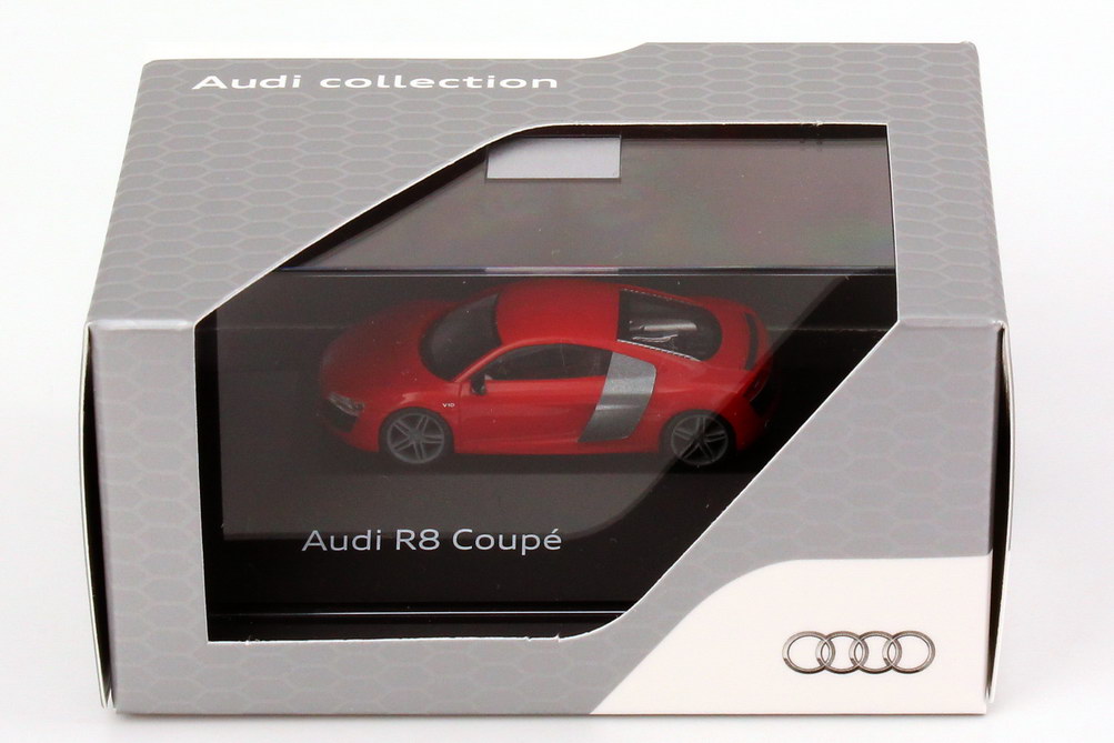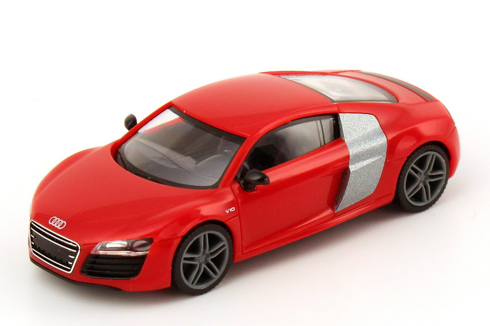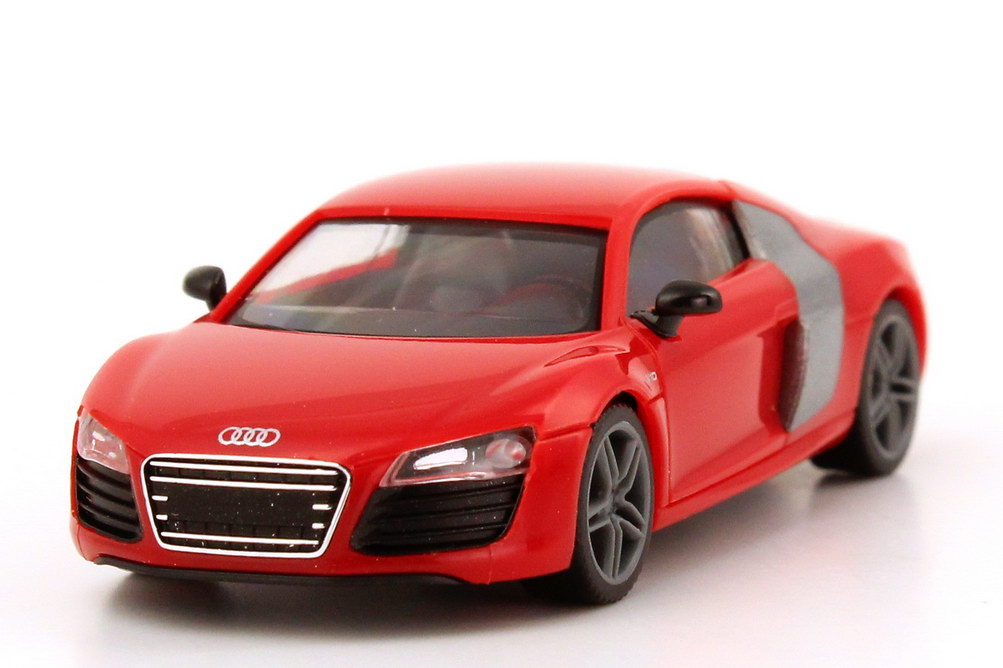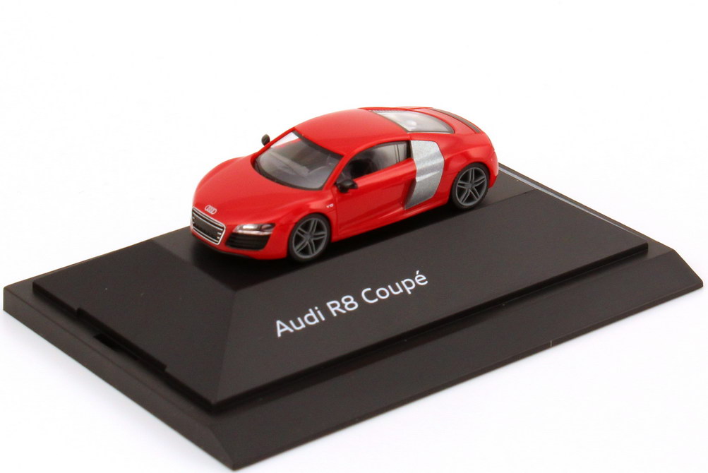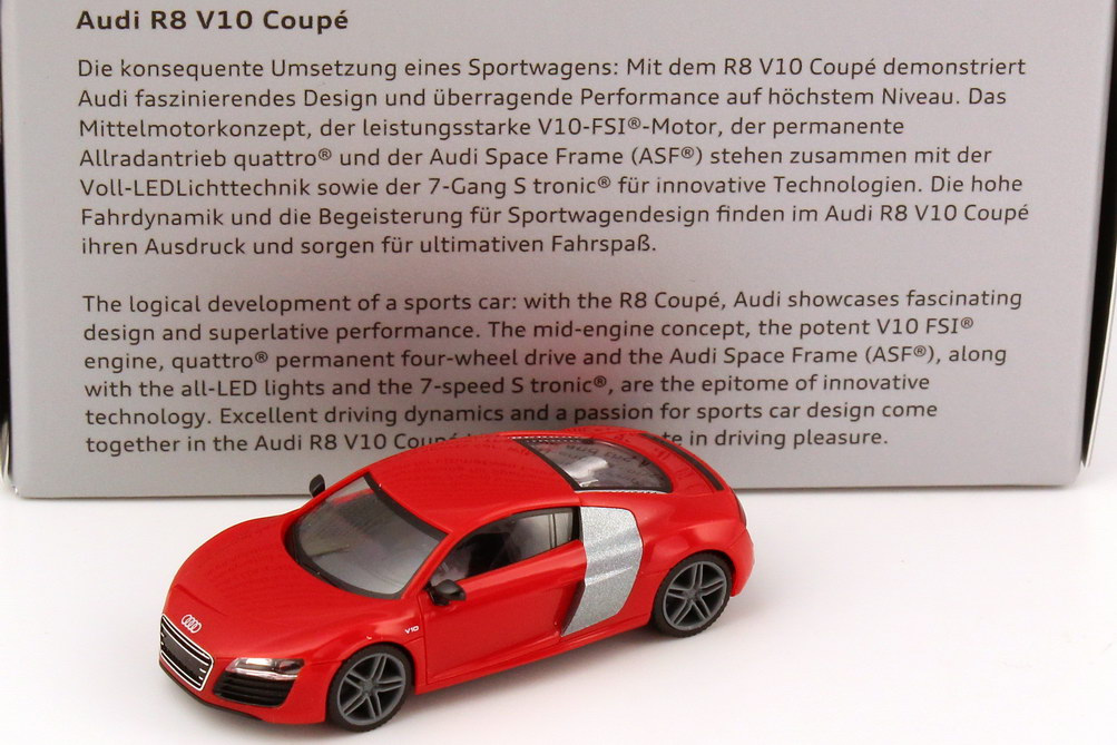 herpa-Modellauto in Minivitrine, M 1:87, Audi R8 V10 Coupé Facelift 2012 brillant-rot (Audi-Werbemodell)