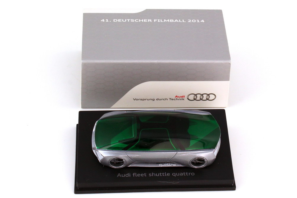 Spark-Modellauto in Minivitrine, M 1:87, Audi fleet shuttle quattro silber-met. (Concept-Car aus dem Film Enders Game, Sondermodell 41. Deutscher Filmball 2014)