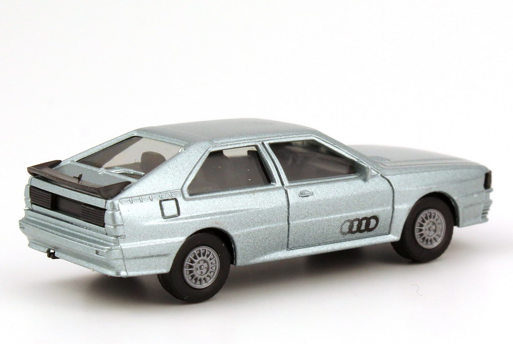 herpa-Modellauto, M 1:87, Audi quattro blau-silber-met., Türdruck Audi-Ringe