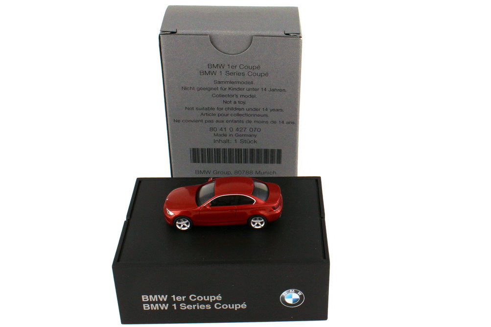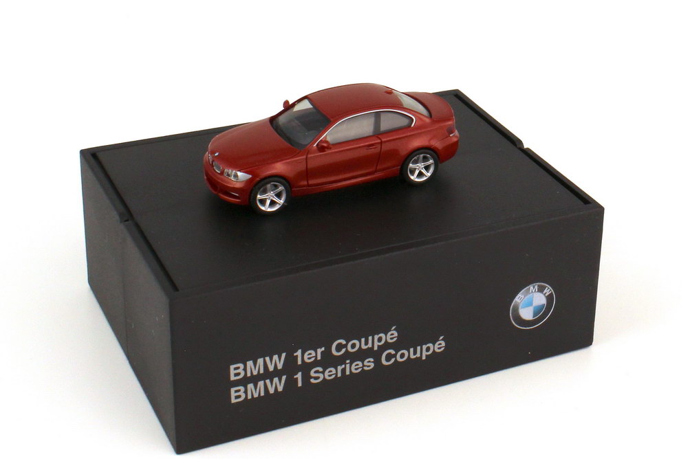 herpa-Modellauto in BMW-Klappbox, M 1:87, BMW 1er Coupé (E82) sedonarot-met. (BMW-Werbemodell)