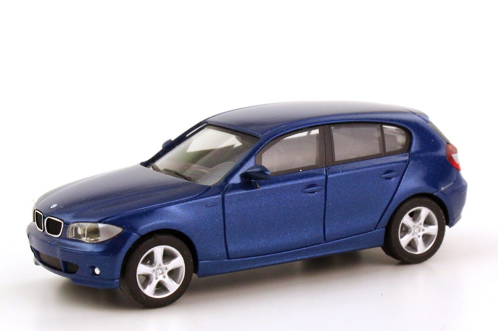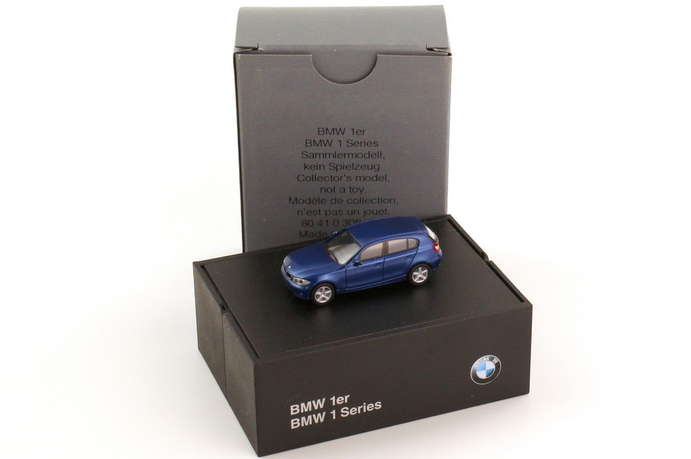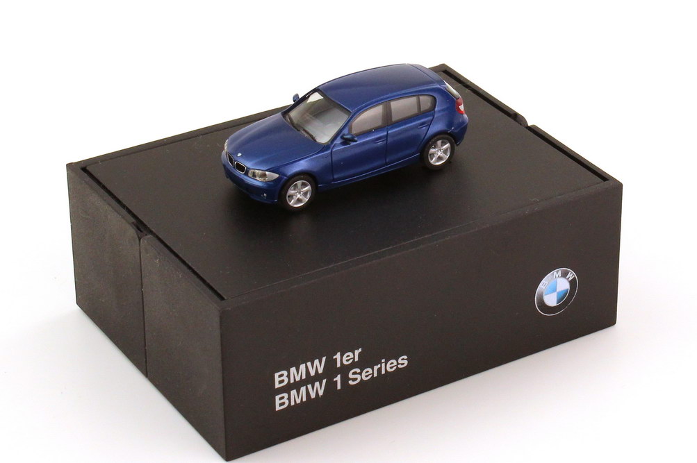 herpa-Modellauto in Klappbox, M 1:87, BMW 1er (E87) sydneyblue-met. (BMW-Werbemodell)