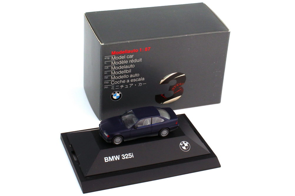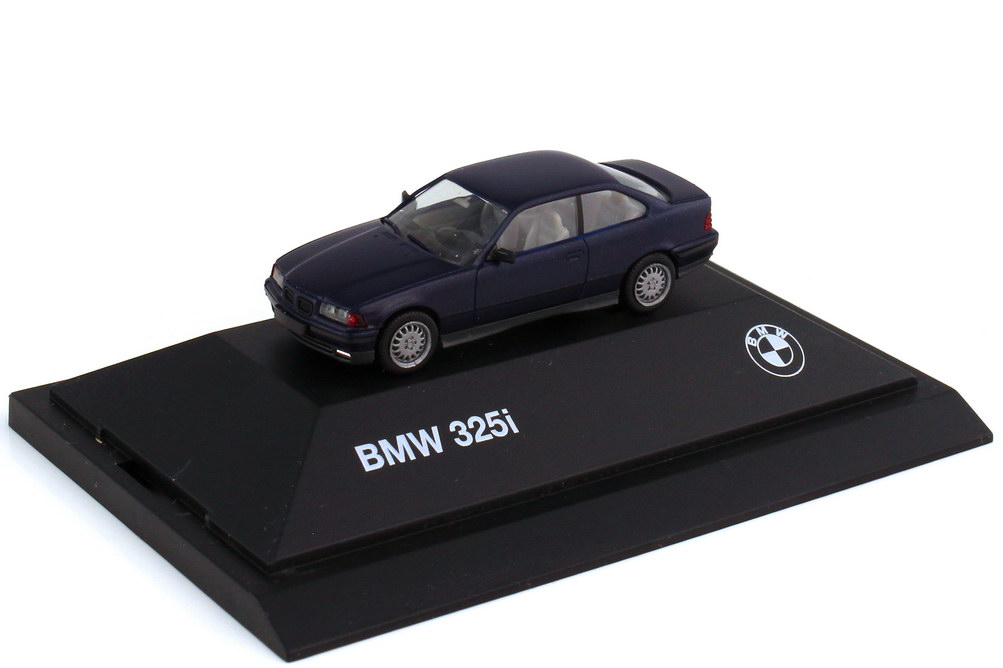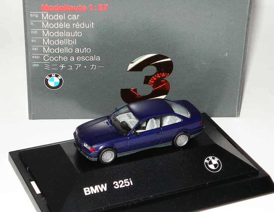 herpa-Modellauto in Minivitrine, M 1:87, BMW 3er 325i Coupé (E36) mauritiusblau-met. (BMW-Werbemodell)