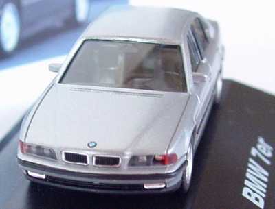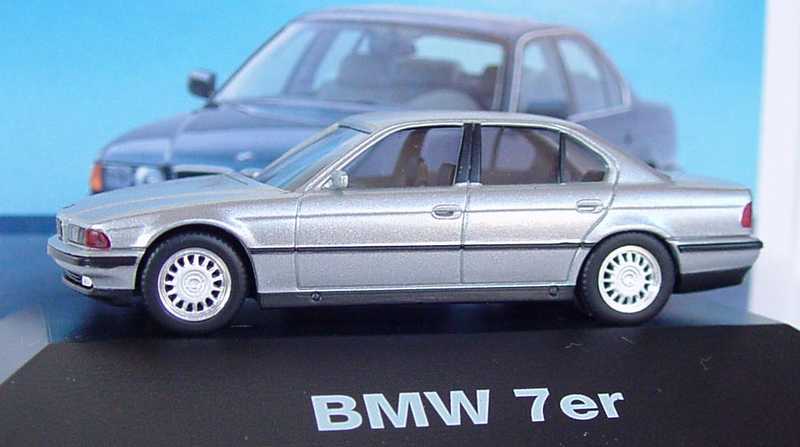 herpa-Modellauto in Minivitrine, M 1:87, BMW 740i (E38) silbermet. (BMW-Werbemodell)