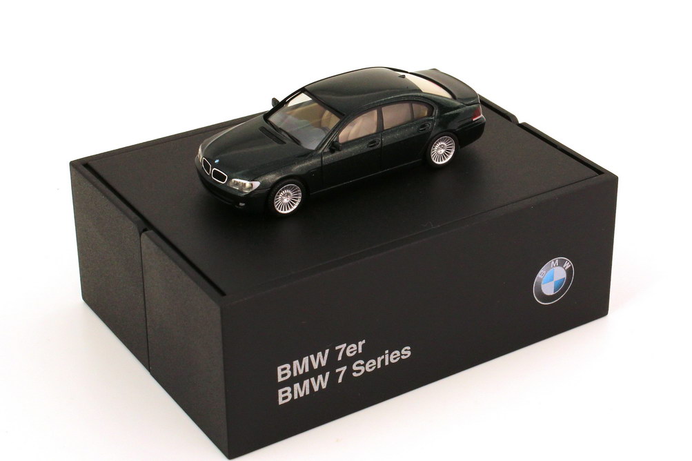 herpa-Modell in BMW-Klappbox, M 1:87, BMW 7er (E65 LCI) Facelift 2005 tiefgrün-met. (BMW-Werbemodell)