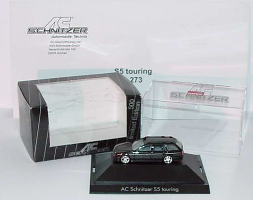 herpa-Modellauto in Minivitrine, M 1:87, AC Schnitzer S5 Touring (Basis BMW 5er E39) schwarz (Schnitzer-Werbemodell mit Zertifikats-Brief)