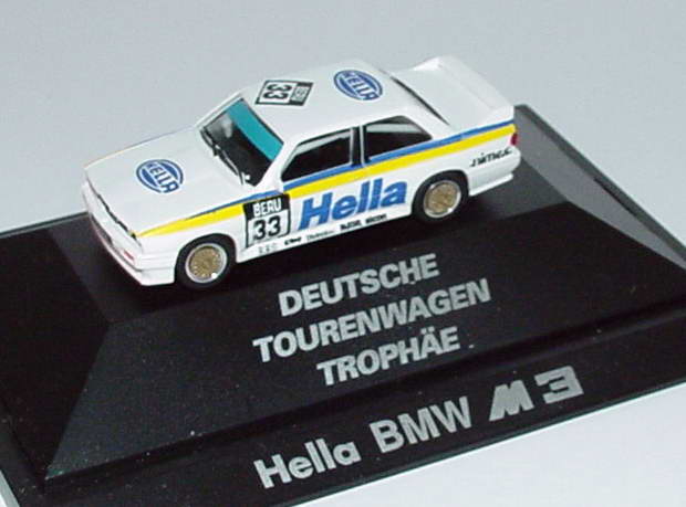 herpa-Modellauto in Minivitrine, M 1:87, BMW M3 (E30) DTT "Hella" Nr.33