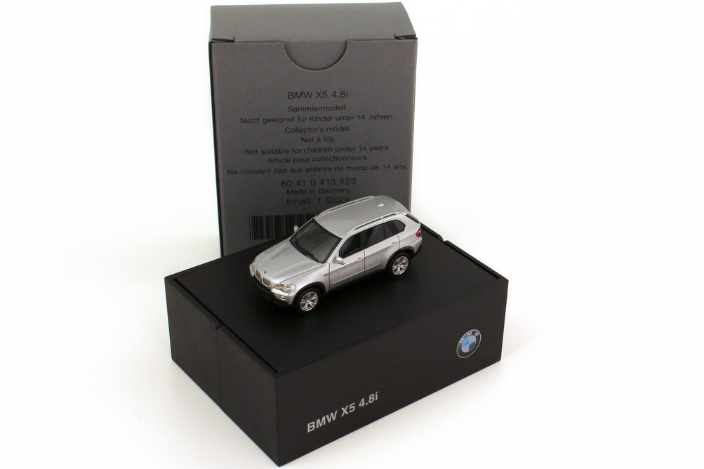herpa-Modellauto in BMW-Klappbox, M 1:87, BMW X5 4.8i (E70) titansilber-met. (BMW-Werbemodell)