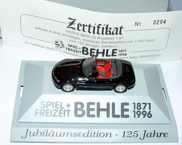 1:87 BMW Z3 schwarz mit Alpina-Felgen "125 Jahre Behle" herpa 223713