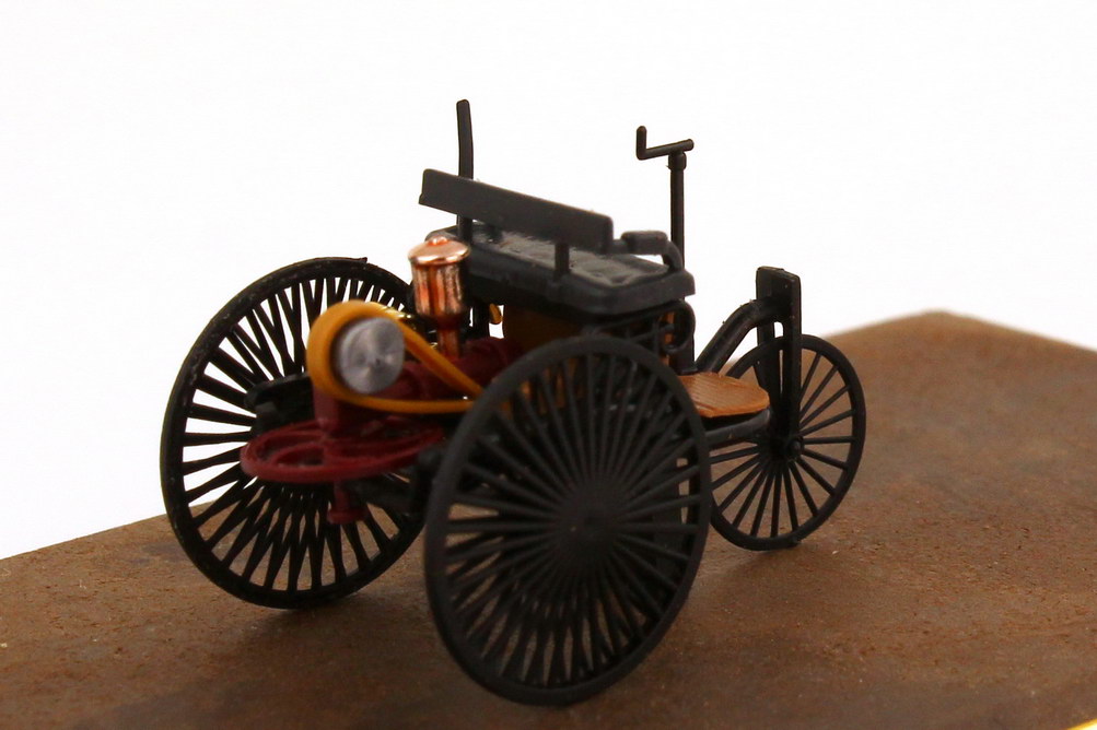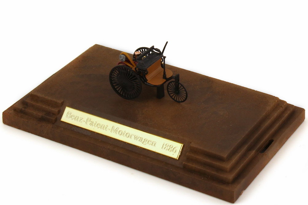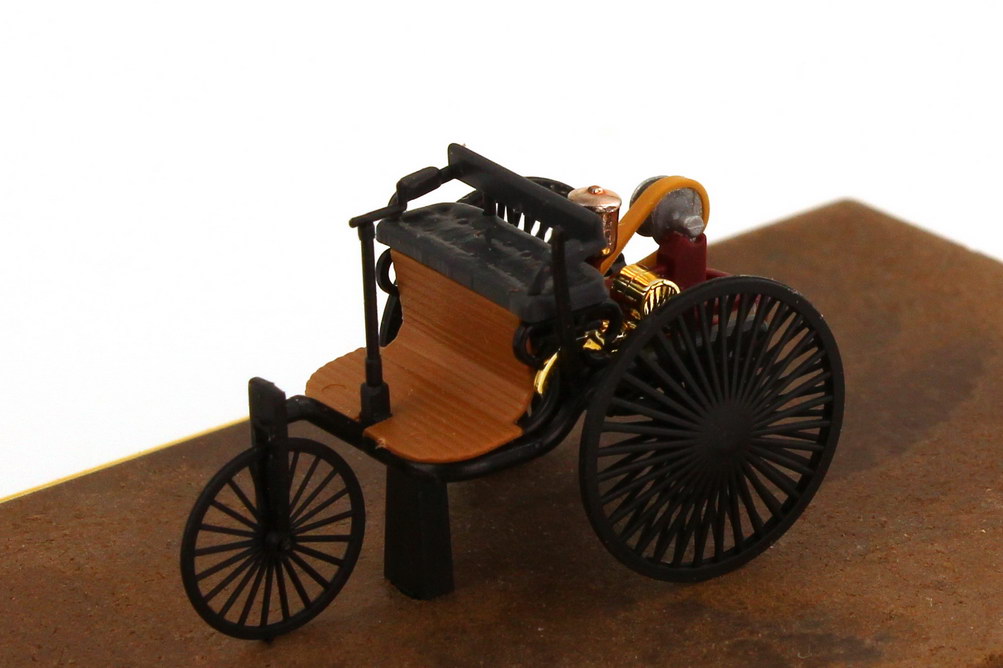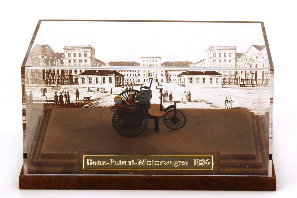 Busch-Modellauto in Minivitrine, M 1:87, Benz Patent-Motorwagen 1886 schwarz