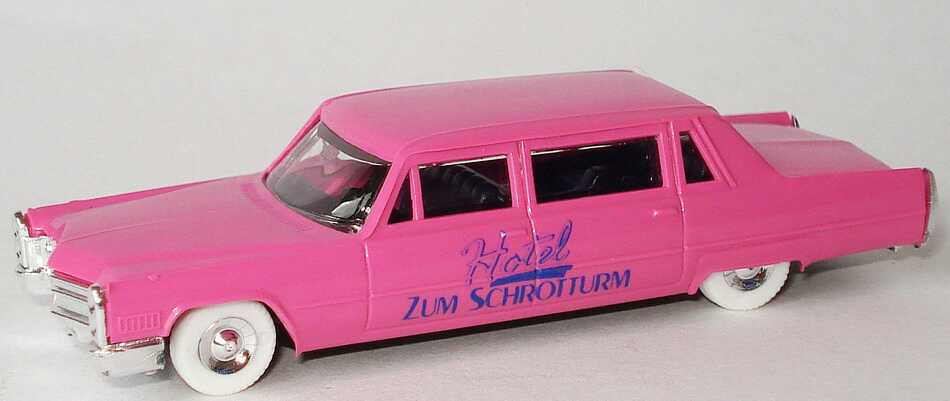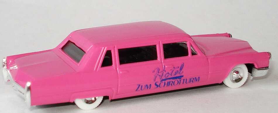 1:87 Cadillac Fleetwood Seventy-Five Limousine lang (1966) pink "Hotel zum Schrotturm" Praliné 2807(ausPolaBausatz825)